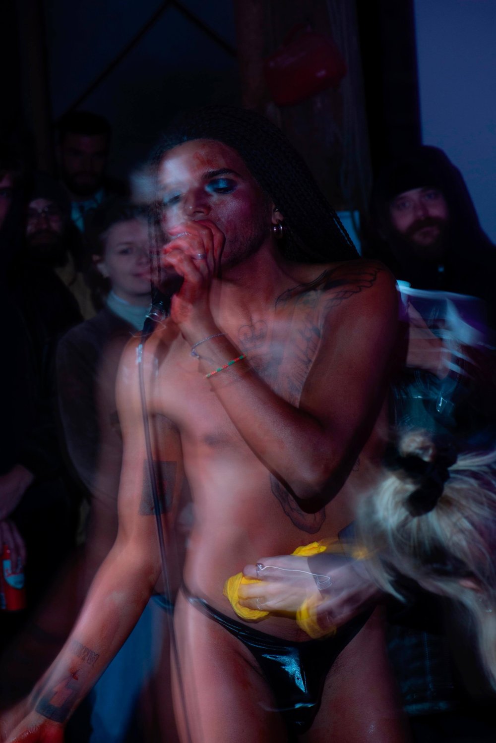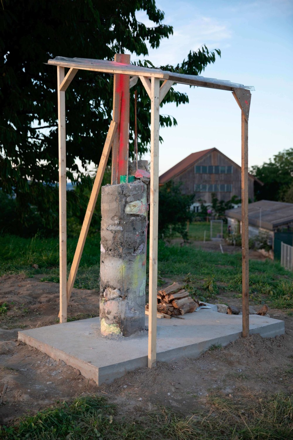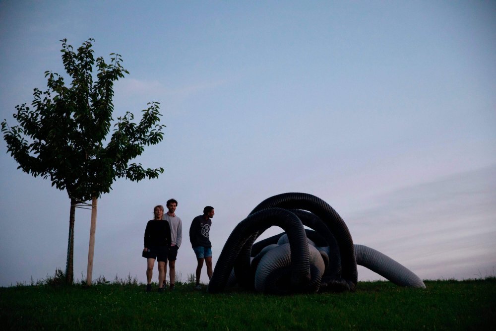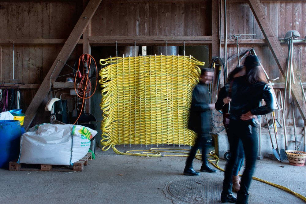 Seit jeher gehören Verwandlungen zu den kulturellen Praktiken, die faszinieren und zugleich verstören. Ein Lebewesen, das plötzlich innehält, sich scheinbar selbst zerstört und als vollkommen neues Geschöpf aufersteht. Von den privilegierten Gottheiten der vorchristlich polytheistischen Religionen über phantastische Mischwesen – halb Mensch, halb Tier – aus Sagen, Märchen und Fantasy bis hin zu komplexen Verwandlungsbildern und -geschichten in der Literatur, die Beziehung zwischen Menschen und Tieren ist ein oft behandeltes Thema. Im Zuge der jüngsten technologischen und medizinischen Fortschritte, die es erlauben, Körper nach Belieben zu verändern, Organe zwischen Menschen und Tieren auszutauschen oder menschliche Zellen in Tieren zu züchten, erhalten Fragen über eine gemeinsame Zukunft von Menschen und Tieren eine neue Dringlichkeit. Für die Ausstellung VEE (23.05. – 03.10.2020) und vor dem konkreten Hintergrund des Landwirtschaftsbetriebs Hof Blum nahmen Badel/Sarbach, Benjamin Egger, Ernestyna Orlowska, Fridolin Schoch, Ina Weise und Patrick Ostrowsky installative, skulpturale und performative Eingriffe vor. Performances, Screenings und Shows von Daniela Ehrsam, Ivy Monteiro, Maya Rochat und Soya The Cow begleiteten die Vernissage und die Finissage. Gemeinschaft, Körper und Transformation gehörten zu den thematischen Schwerpunkten der Ausstellung. Ausserdem wurde die Ausstellung durch Hofgespräche mit den Gästen Antoine F. Goetschel, Viviane Ehrensberger, Jacques Fuchs, Hans Preisig und Michael Kortenbusch sowie Mimikry-Workshops (Konzept: Julia Wäckerlin und Pia Schwarz) erweitert. VEE entstand in Zusammenarbeit zwischen Jakob Lienhard, Valérie Hug, Marcel Hörler und Martin Blum.