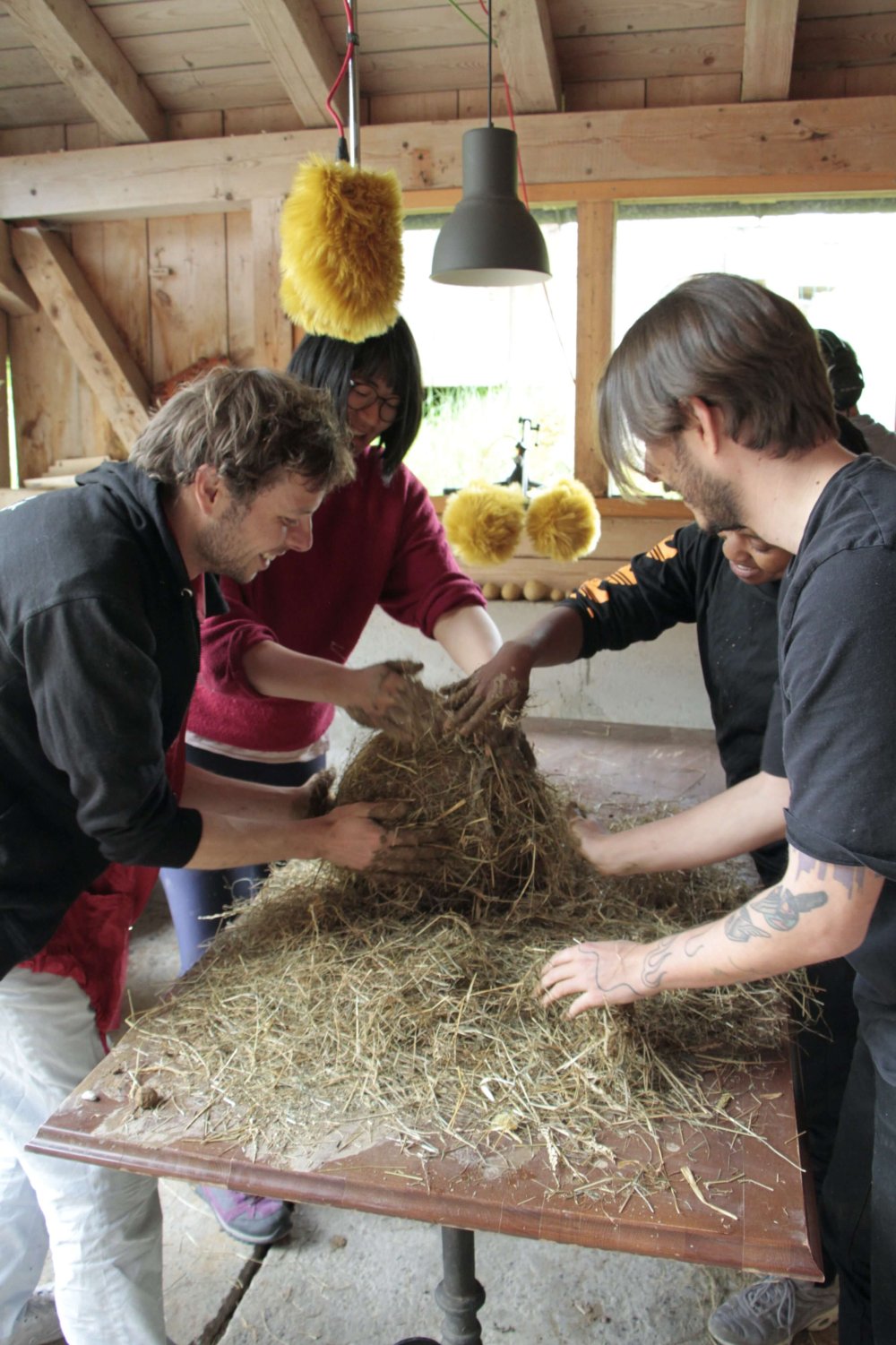 We can never know what we will find – when we dig a hole... Earth is a filter, an archive, provides livelihoods, and is an arena for interspecies exchange. Interdependencies, or mutual dependencies, are intrinsic to the earth. Thus Performing Soil is dedicated to those moments of tension in this terrain that arise apart from conventional scientific methods. They assume that projects can be scaled, i.e. that they can function on a small scale as well as on a large one, but they disregard the fact that the actors can change through encounters. The idea to Performing Soil comes from the artists Silke kleine Kalvelage, Jan Georg Glöckner and the curator/cultural mediator Marcel Hörler. Over a period of three months, surrounded by a nature preserve, they collaborated with dancers, artists, craftspeople, and scientists Lisa Lee Benjamin, Marisa Mayer, Xaver Ammann, Kay Zhang, Brigham Baker, New Kyd, Reut Nahum, and Rosa Violetta Zettl to shape a massive globe. The globe was - in the context of the first exhibition at Kunstraum parat - auctioned off and together with three radio shows, the photo documentation and other small-format soil exhibits presented between 9th to 18th of December 2021 to the public.
