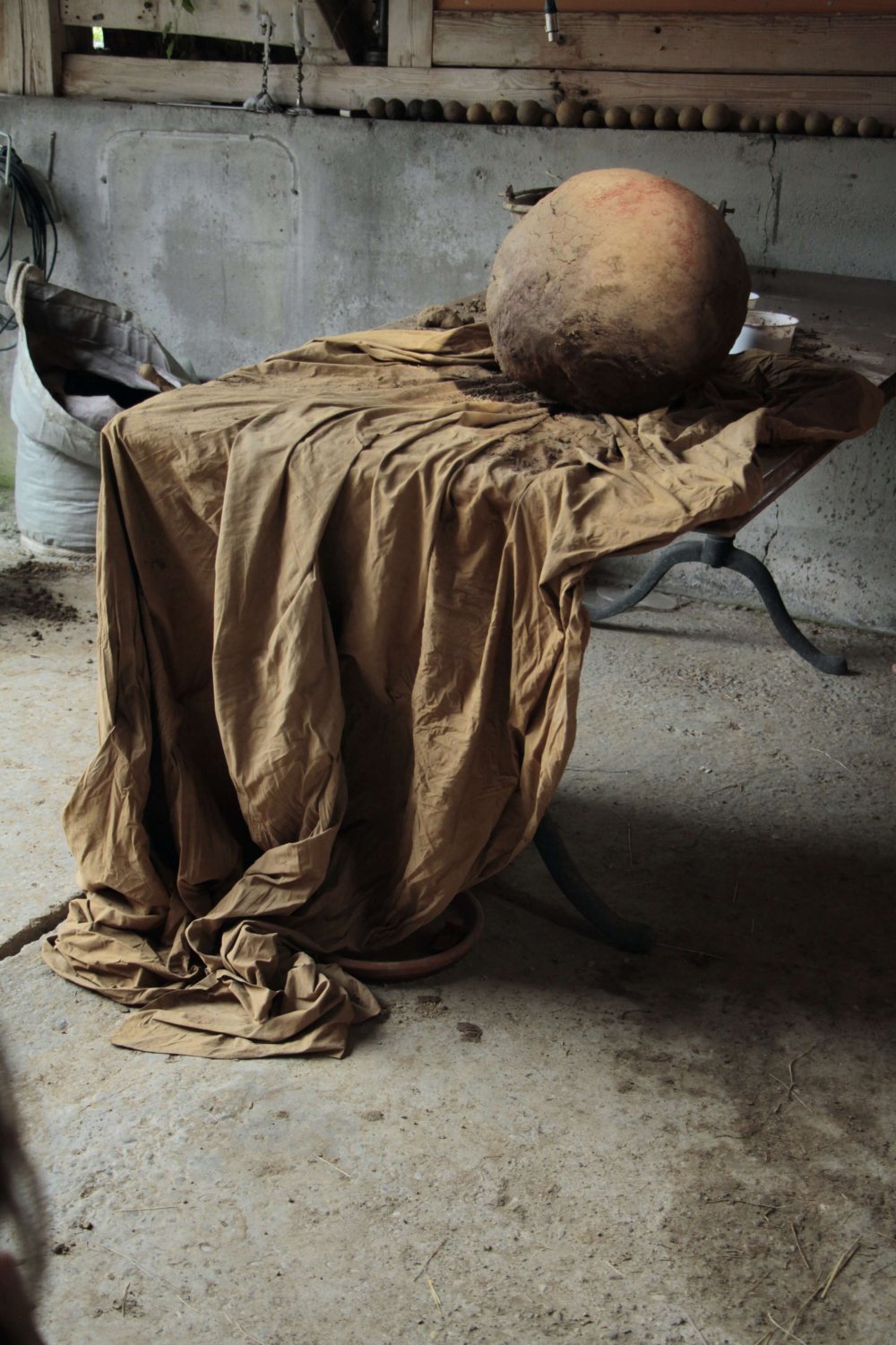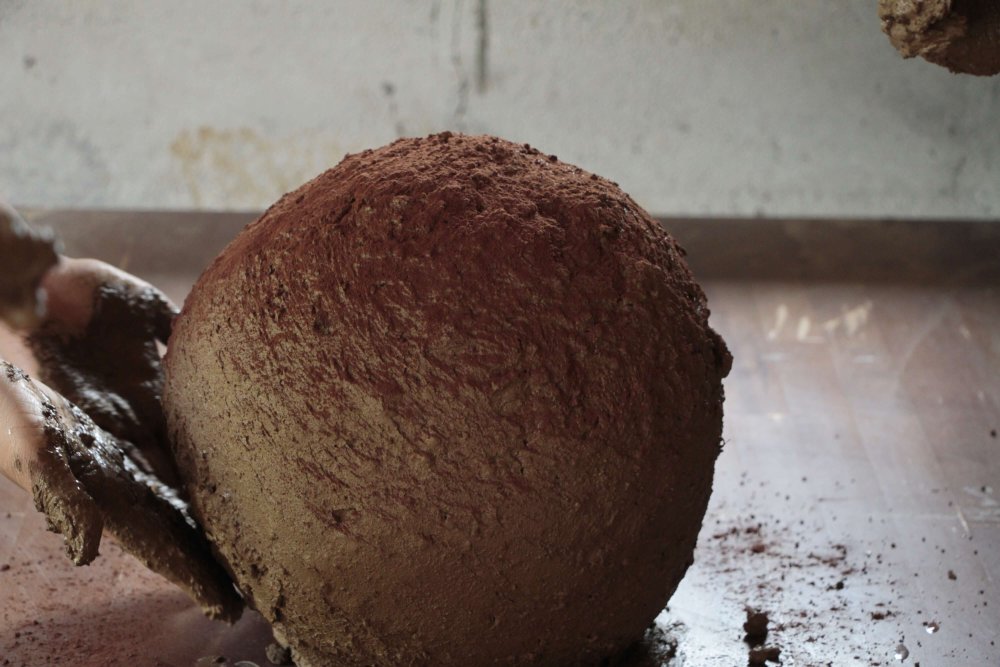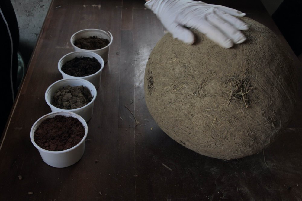 We can never know what we will find – when we dig a hole... Earth is a filter, an archive, provides livelihoods, and is an arena for interspecies exchange. Interdependencies, or mutual dependencies, are intrinsic to the earth. Thus Performing Soil is dedicated to those moments of tension in this terrain that arise apart from conventional scientific methods. They assume that projects can be scaled, i.e. that they can function on a small scale as well as on a large one, but they disregard the fact that the actors can change through encounters. The idea to Performing Soil comes from the artists Silke kleine Kalvelage, Jan Georg Glöckner and the curator/cultural mediator Marcel Hörler. Over a period of three months, surrounded by a nature preserve, they collaborated with dancers, artists, craftspeople, and scientists Lisa Lee Benjamin, Marisa Mayer, Xaver Ammann, Kay Zhang, Brigham Baker, New Kyd, Reut Nahum, and Rosa Violetta Zettl to shape a massive globe. The globe was - in the context of the first exhibition at Kunstraum parat - auctioned off and together with three radio shows, the photo documentation and other small-format soil exhibits presented between 9th to 18th of December 2021 to the public.