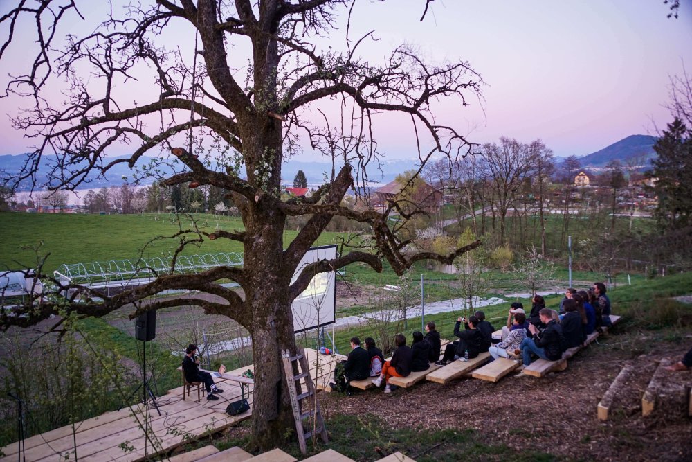 Sustainability is no longer just a question of ecological circumstances such as climate change, geographical particularities or agricultural technologies but a question of production and consumption. Between April 20th and September 7th, 2019, the Plateaux Festival invited artists to discuss sustainability issues and solutions within the framework of the ecological farm Froh Ussicht in Samstagern, in the periphery of Zurich. In addition, guests were invited to take up the theme of the festival with a Carte Blanche, in order tackle curated performances, film evenings, installations and actions with unexpected ideas. The festival was designed by Marcel Hörler and Mateo Chacon-Pino. Design and code: Lydia Perrot and Lisa Li. Following an invitation by Martin Blum. The art mediation program was designed by Seline Fülscher. With artistic contributions by Artist Organizations International, Aurélie Strumans, Carina Erdmann & Anna Kindermann, Johanna Bruckner, Johanna Kotlaris, Martina Mächler, Matthew C. Wilson, Nino Baumgartner, San Keller, Simon Würsten Marin, Thomas Geiger and Yael Wicki. Guests included Bergkrautsyndikat, Kunsthaus Aussersihl, Kunst Du, Wagner & Friends with Carlos Fernández and Violeta Burckhard Razeto.